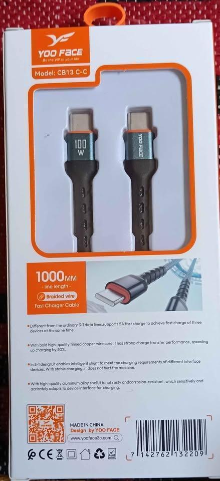Avec sa conception robuste et flexible, le Câble Type-C Yoo Face CB13 garantit une utilisation quotidienne sans risque de détérioration. Il est idéal pour vos smartphones, tablettes, ordinateurs portables et autres appareils compatibles Type-C.